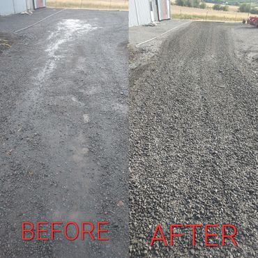 If you have a driveway, parking lot or a gravel surface in need of some maintenance or repair, we can help. Potholes, washboard, ruts and more can be eliminated, improving your gravel surface. We can also freshen up your gravel areas by moving gravel from the sides back to the higher traffic areas. All of this can be done without buying new gravel and paying for grading.